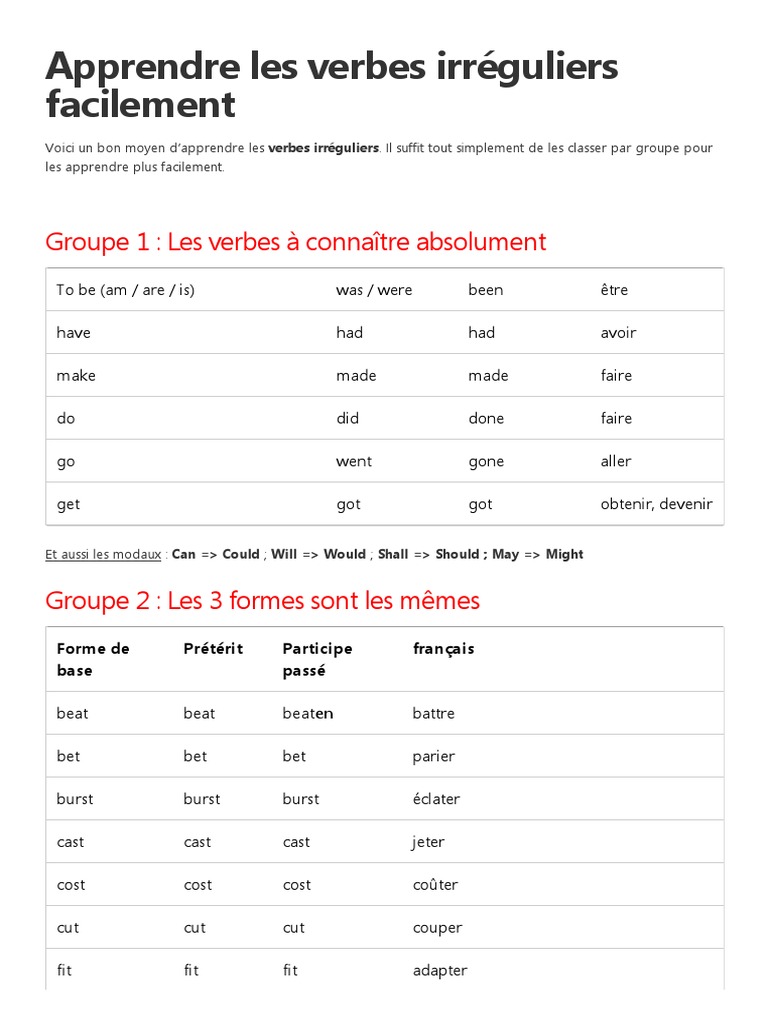 Verbe Anglais Et Leurs Participes : Verbes Irreguliers Verbes Irreguliers Grammaire Anglaise Verbe / La tradition grammaticale présente le verbe en opposition au nom à cause de sa capacité d'exprimer un procès, en traduisant une action accomplie (ex.